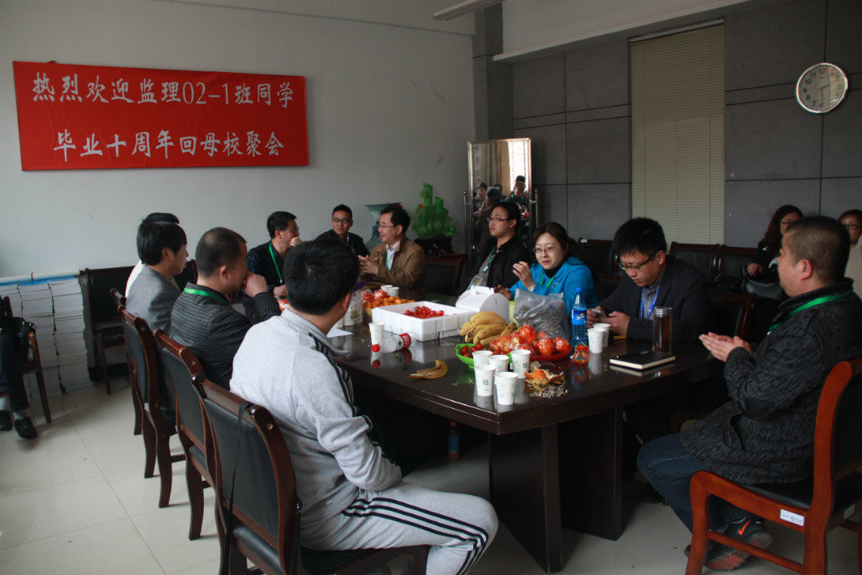 在這個盎然生機的春季,工程監理02-1班迎來了畢業十周年聚會,班級近三十位同學于4月11日從全國四面八方趕到美麗的江蘇建院,大家齊聚一堂,重回故地,回憶青春年少學習時光,一點一滴猶記心頭。心里有說不完的話,道不完的師生情。校友們在回校聚會期間,邀請了學院領導、當年的班主任以及為部分授課的老教師一起在建管學院會議室進行了座談。座談會上,師生們共同回顧了當年在校期間的美好時光,分享了校友們在工作、學習和生活中的喜悅和成就,會上丁維華院長向同學們介紹了當前學校和學院的建設、發展情況,同學們對母校的未來表達了祝福之情。座談會之后,校友們興致盎然地參觀了校園,重溫了當年在校期間學習生活過的教室、宿舍、食堂、運動場,欣喜地看到了學校、學院方方面面所發生的巨大變化。