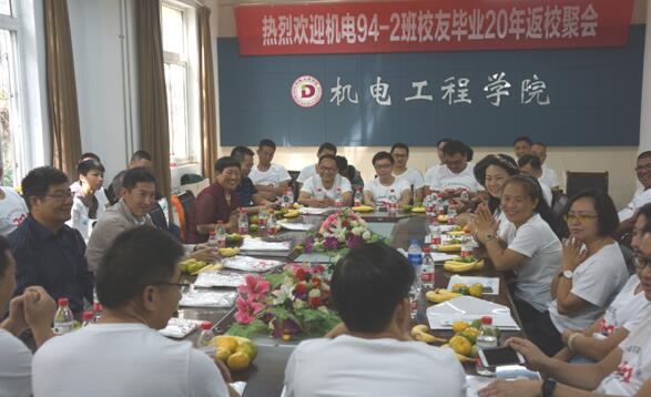 機(jī)電工程學(xué)院電子96-1班和機(jī)電94-2班57名校友分別于10月2日、3日回到母校,共慶畢業(yè)20周年,暢談人生感悟,追憶同窗往事,擁抱母校美好景色,展望美好未來。機(jī)電工程學(xué)院黨總支書記潘峰、院長仇文寧出席了此次聚會。