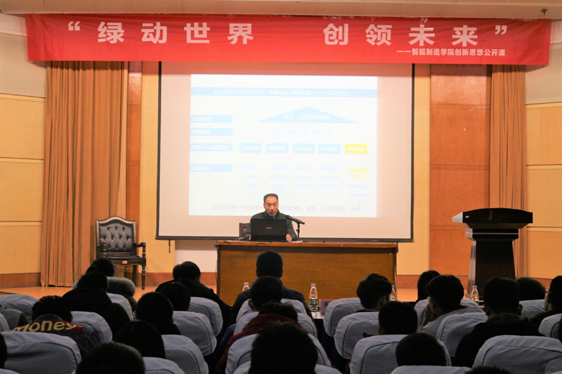 12月25日下午,智能制造學院在學術(shù)報告廳舉辦綠色創(chuàng)新思想公開課。本次的創(chuàng)新思想公開課以“綠動世界創(chuàng)領(lǐng)未來”為主題,邀請了徐工集團技術(shù)專家朱磊、孫鳳霞、李長青、雷許為300余名師生上了一堂生動的綠色創(chuàng)新課程。