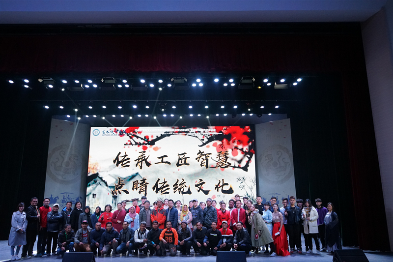 3月20日晚,藝術設計學院“傳承工匠智慧 點睛傳統(tǒng)文化”展示活動在會堂拉開帷幕。印尼來訪教師與我校學生一起觀看表演。