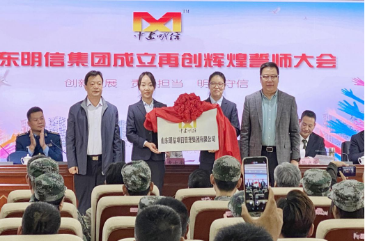 江蘇建筑職業技術學院黨委委員、副院長劉海波同志與濟寧市住房和城市建設局建筑工程服務中心主任王文戈同志聯袂為山東明信項目管理集團有限公司成立揭牌。