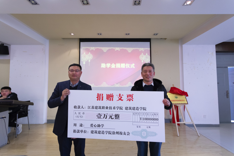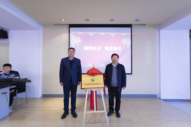 會上,孫進以校友文化的傳承為題發表講話,勉勵建筑建造學院在徐校友為徐州的經濟建設,為學校事業進步發揮更大作用。沈士德為新成立的建筑建造學院徐州校友會揭牌,并為新當選的理事頒發證書。梁惠宣讀了學校校友總會關于同意成立建筑建造學院徐州校友會的批復文件。