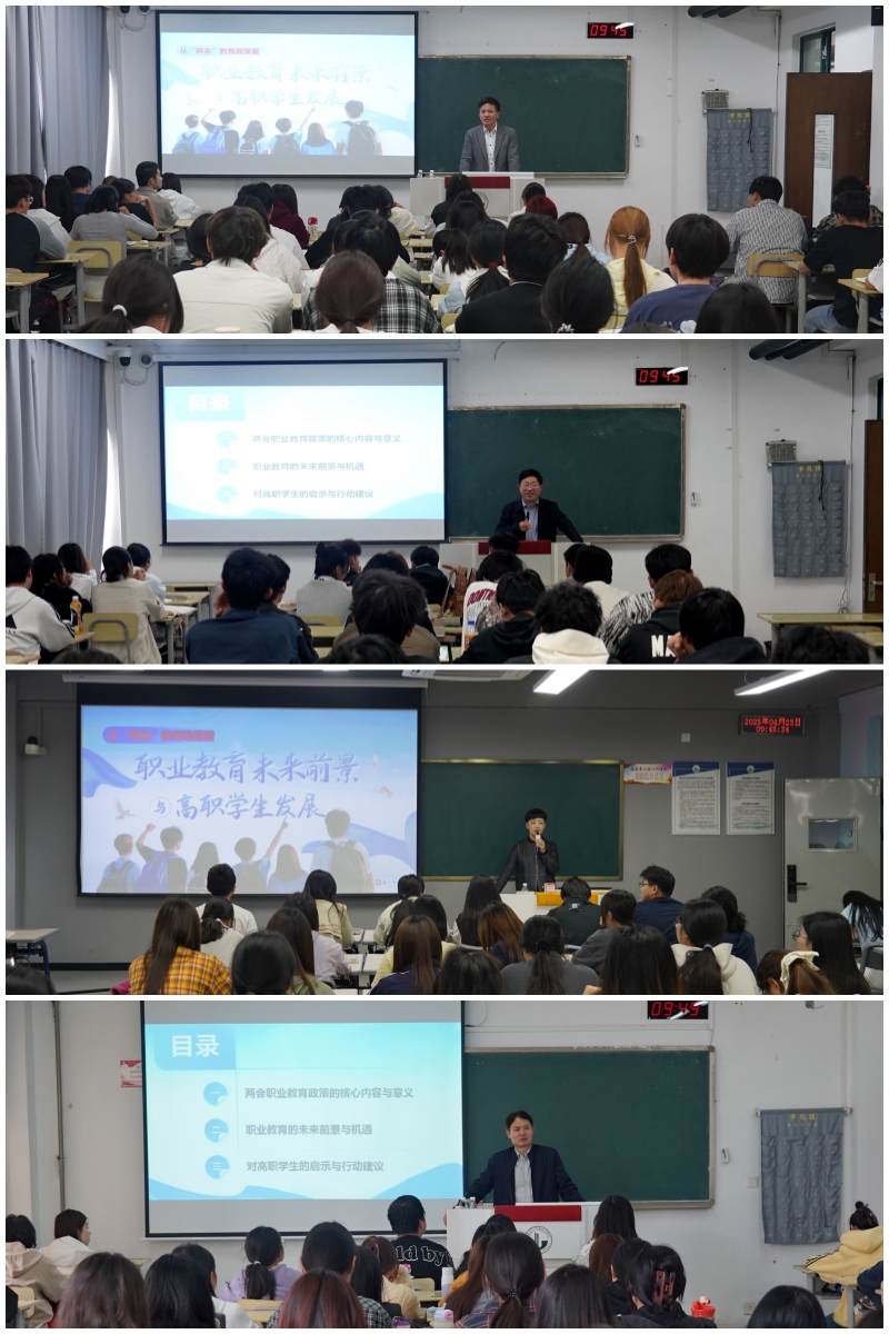 校領導緊扣全國兩會精神,結合學校實際,深刻闡述現代職業教育在新時代的使命和機遇,鼓勵同學們樹立“技能報國”理想信念,提升本領,在強國建設中綻放青春光彩。