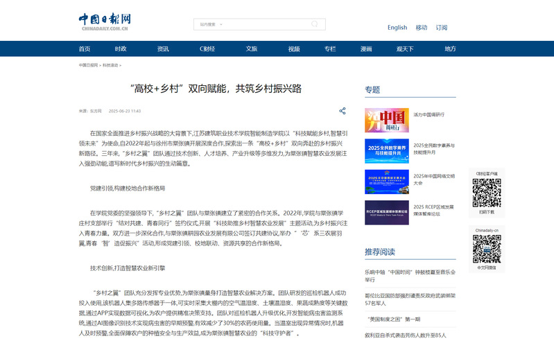 未來,江蘇建院智能制造學(xué)院將繼續(xù)發(fā)揮學(xué)院專業(yè)優(yōu)勢,以科技創(chuàng)新賦能鄉(xiāng)村振興,為全面推進(jìn)鄉(xiāng)村振興貢獻(xiàn)更多青春力量。