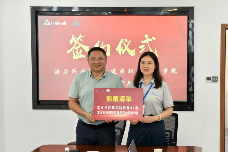 儀式上,蔣兆峰簡(jiǎn)要介紹了學(xué)校發(fā)展歷程和辦學(xué)成果,并代表學(xué)校對(duì)廈門海為科技有限公司的捐贈(zèng)表示感謝。他表示,當(dāng)前學(xué)校正處于職業(yè)本科創(chuàng)建和湖西校區(qū)辦學(xué)等重要發(fā)展階段,此次捐贈(zèng)將有助于推動(dòng)我校專業(yè)建設(shè)和高質(zhì)量發(fā)展。他希望,雙方能夠在工業(yè)物聯(lián)網(wǎng)領(lǐng)域人才聯(lián)合培養(yǎng)、科研協(xié)同攻關(guān)等方面拓展合作深度和廣度,探索更加高效務(wù)實(shí)的合作模式,實(shí)現(xiàn)校企同頻共振、互利共贏。