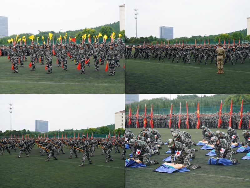 典禮在師生合唱《銘記》的歌聲中拉開序幕。隨后,現(xiàn)場舉行了莊嚴(yán)的升國旗儀式。軍訓(xùn)匯報展示環(huán)節(jié),各新生方隊代表依次進行了人海拼圖、旗語展示、隊列會操、心肺復(fù)蘇與戰(zhàn)場急救包扎等訓(xùn)練科目演示,充分展現(xiàn)了2025級新生良好的精神風(fēng)貌和軍訓(xùn)成果。
