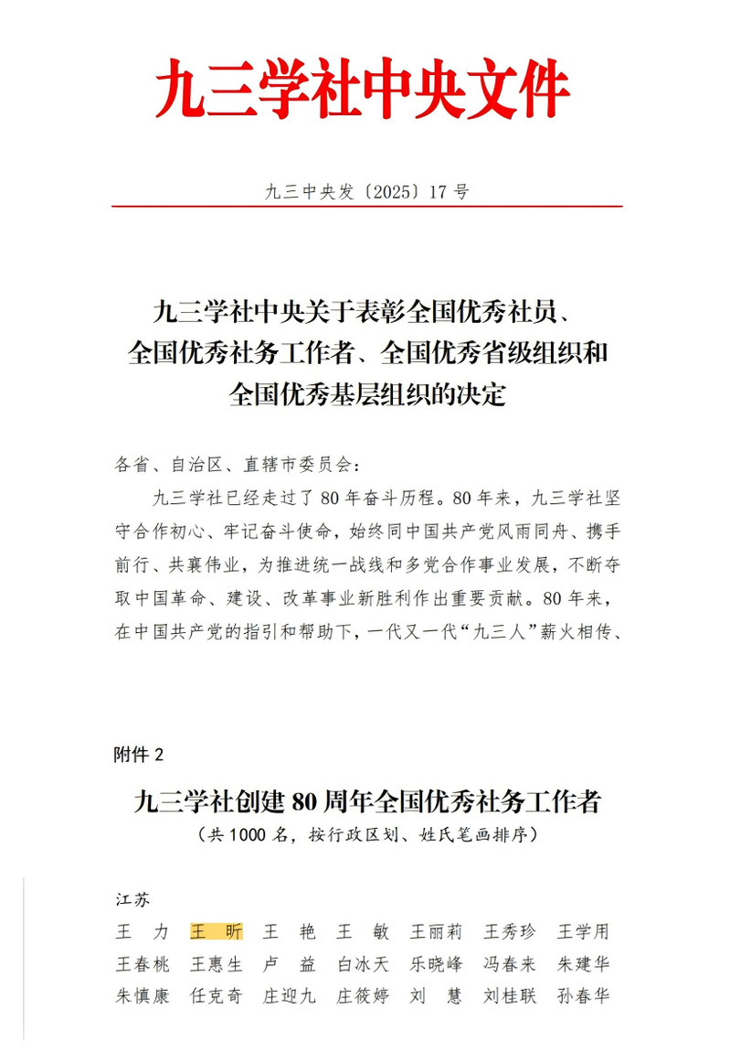 近日,九三學(xué)社中央印發(fā)了《九三學(xué)社中央關(guān)于表彰全國優(yōu)秀社員、全國優(yōu)秀社務(wù)工作者、全國優(yōu)秀省級(jí)組織和全國優(yōu)秀基層組織的決定》,對(duì)在工作中成績突出的省級(jí)組織、基層組織、社員和社務(wù)工作者進(jìn)行了評(píng)選表彰。九三學(xué)社江蘇建筑職業(yè)技術(shù)學(xué)院支社副主委王昕獲“全國優(yōu)秀社務(wù)工作者”稱號(hào)。